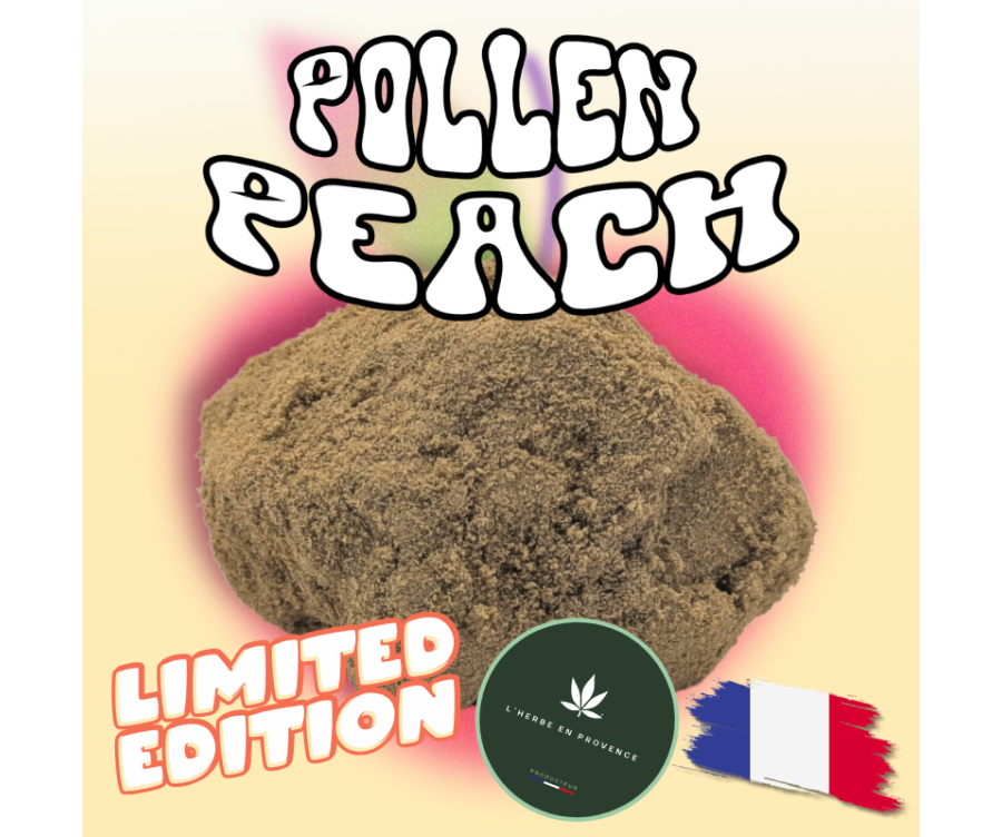 Découvre la nouveauté : Le POLLEN PEACH, une édition limitée 100% française et 100% naturelle qui met à l’honneur des arômes délicieusement fruités ! Conçu pour les amateurs de CBD exigeants, ce produit est un véritable concentré d’authenticité et de qualité, garanti sans solvant ni coupe. Cultivé et produit en Provence !